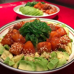 Retrouvez cette recette tendance inspirée des bowl hawaïens aux saveurs asiatiques, et cette façon très répandue de manger tout les ingrédients réunis dans un seul récipient, en composant un repas healthy complet et savoureux. Le beau mélange des couleurs va réveiller votre appétit .. j’en salive d’avance.